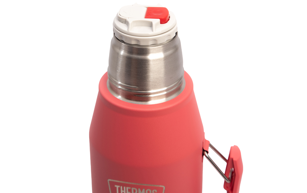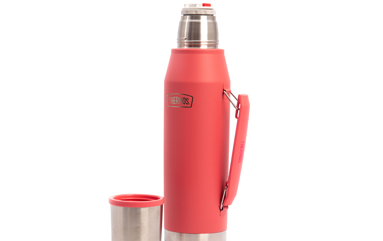 Termo de acero inoxidable con doble aislamiento térmico que manteniene los líquidos fríos o calientes durante horas. Con pico vertedor y cierre hermético, que evita derrames.
